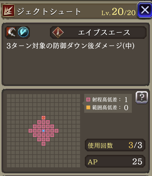| JobLv25 ジェクトシュート習得 | 3ターン対象の防御30ダウン後ダメージ(中) |