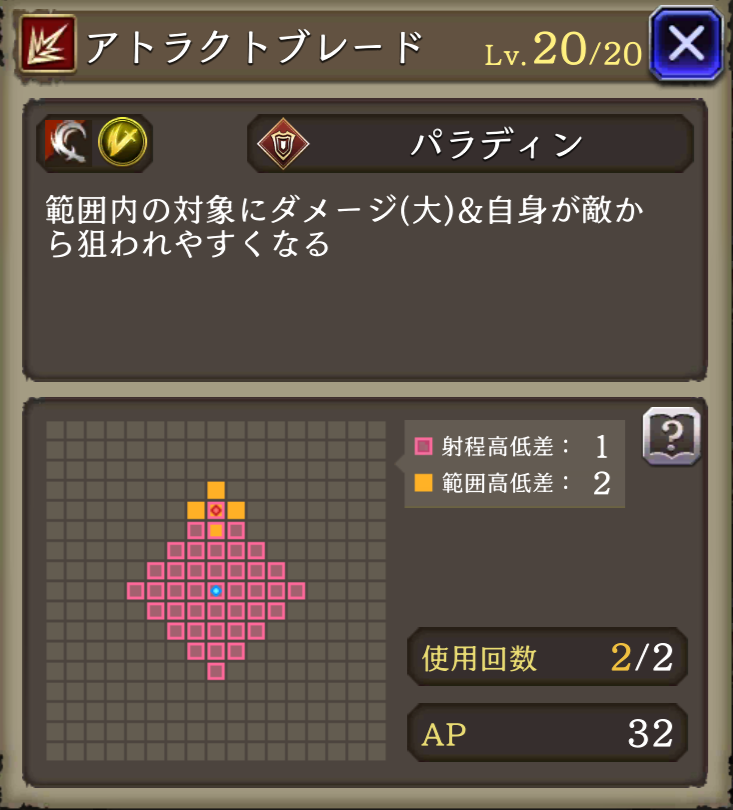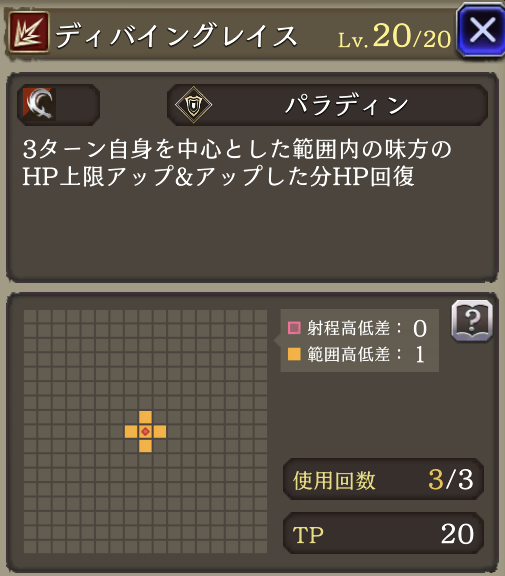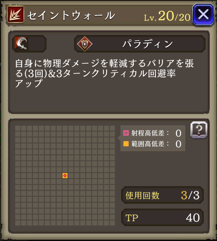 パラディンガード ![]() | パラディン 物理攻撃による被ダメージ時に20%の確率でダメージを45%軽減 |