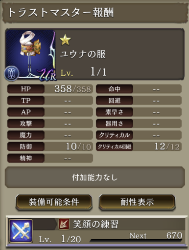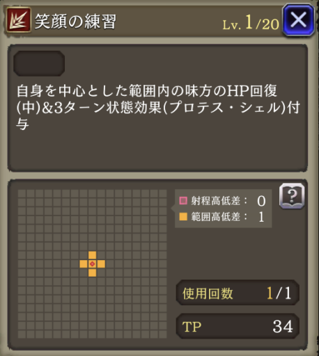 | 味方の光属性ユニットのHP上限+10%・光属性アビリティ攻撃+15、自身の範囲攻撃耐性+10 |