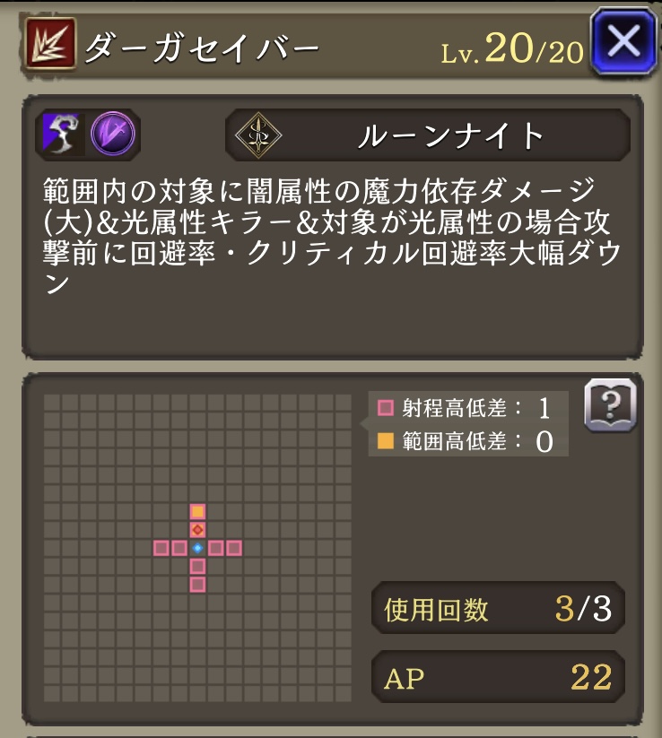 魔動転換 ![]() | ルーンナイト 魔法攻撃による被ダメージ時に30%の確率で自身のAP回復 |
