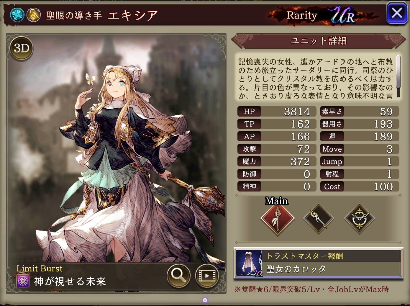 単体耐性+15、リアクション阻止率+30 クリティカル回避+15 ソーサリークレイドルを強化 物理ダメージ20%低下効果を付与 | 魔法系 アタッカー |