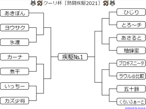 | 全試合 | 10/9(土)23:30~生放送 (事前に対戦済み。この日出場者も他人の試合は初めて見る) |