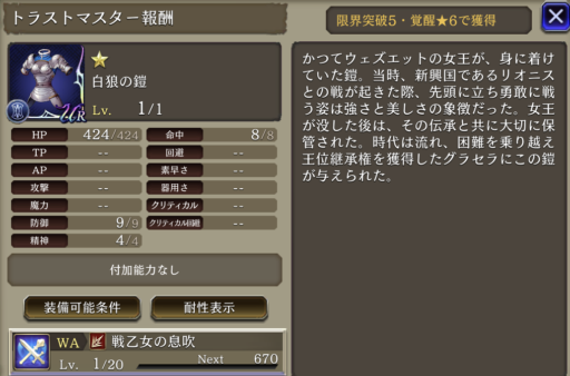 ![]() | 攻撃+150% 防御貫通率+40 | 7 |