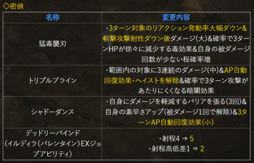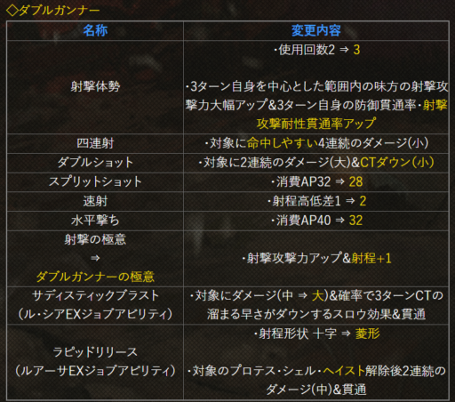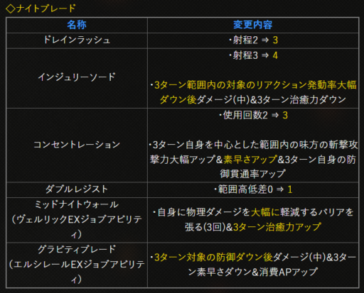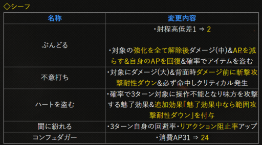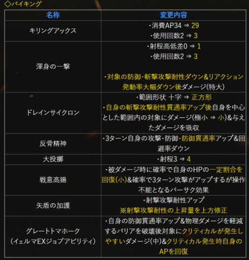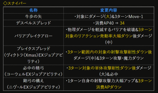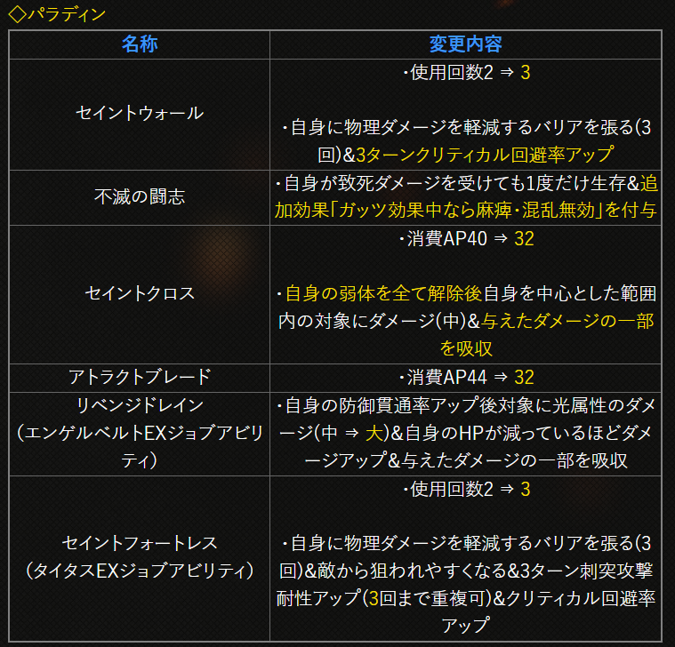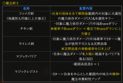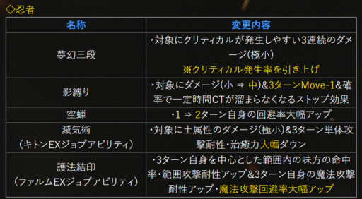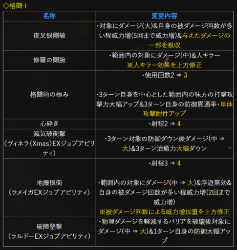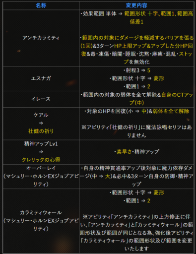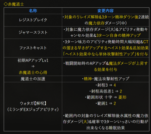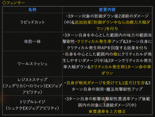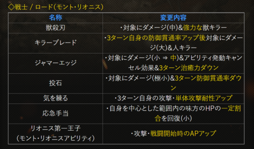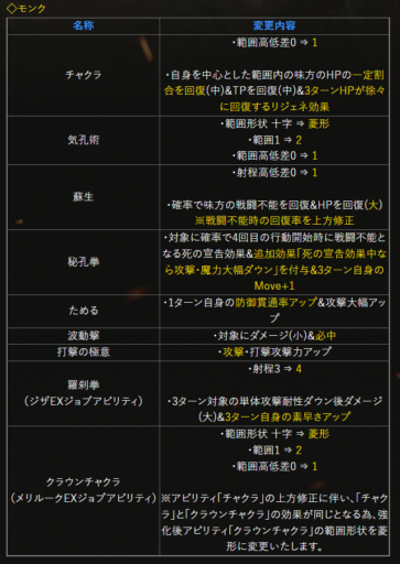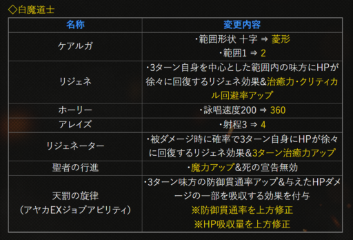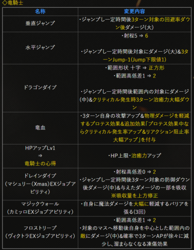 | 〇召の陣 | 単体耐性+15➜25に 召喚ゲージ獲得量+60➜100に |