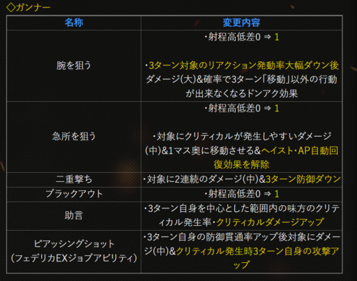 | 剛弓の構え | AP消費量33%ダウン |