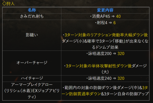 | 矢盾の加護 | 射撃耐性+25に |