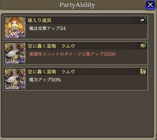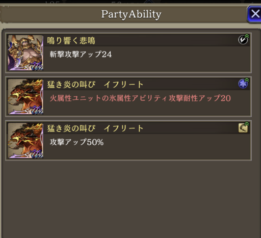 ▲パーティアビリティ斬撃攻撃アップのみの状態