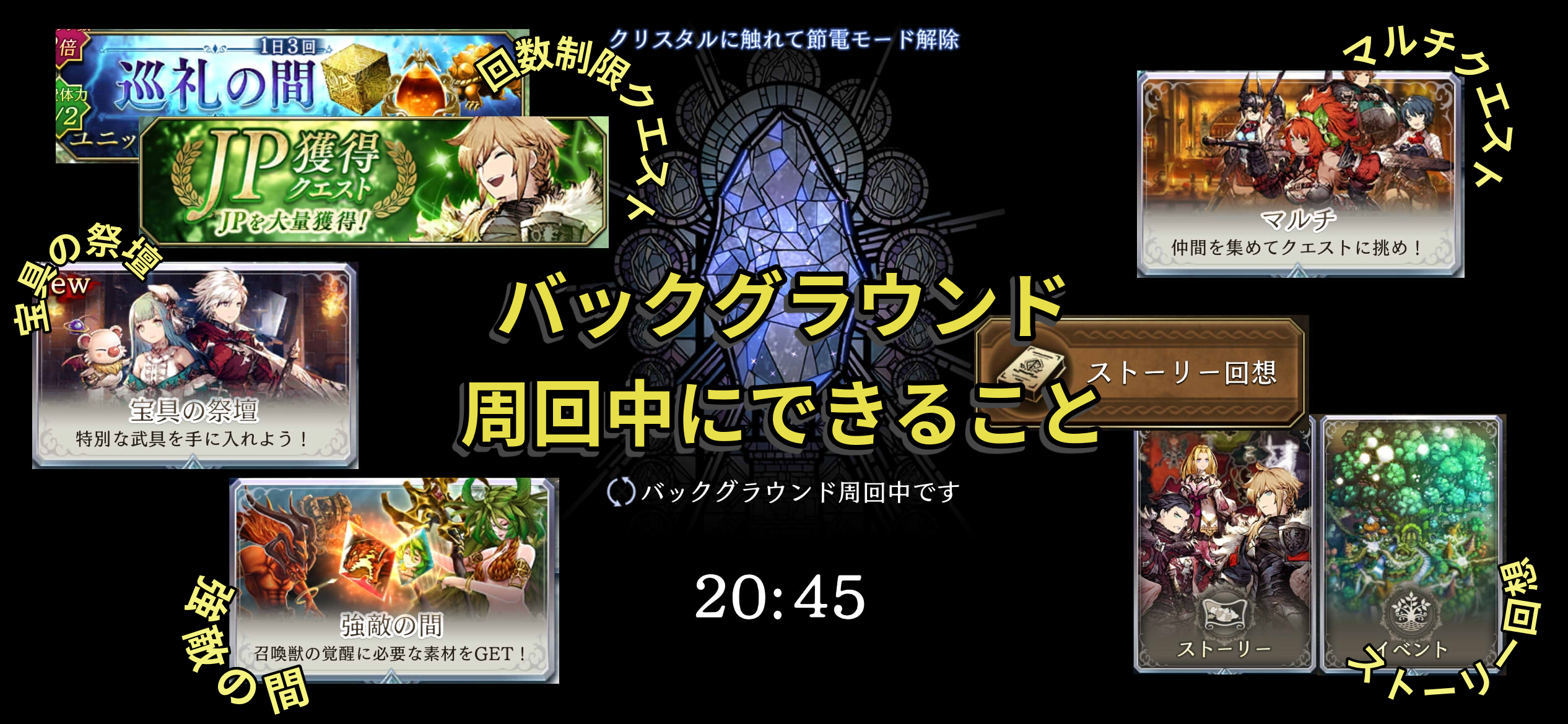 バックグラウンド周回中にプレイ可能なクエスト・コンテンツをまとめました。並行して効率的にゲームを遊びつくそう!