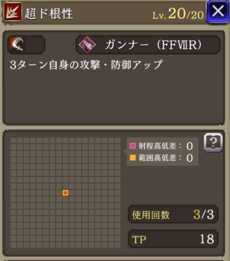![]() アレキ指輪で+40 幻音の鈴+7 連撃強化+20 召喚獣オーディン +7(更に+15上げることも可能) VC「研ぎ澄まされた集中力」で+20 仲間のVC (運+35%で)命中+23 (仲間にオーディンVC+25つけた時とほぼ同じ) |