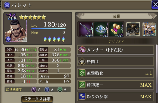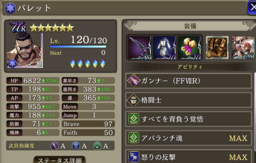 ![]() 高防御バレットを作ります 装備で 防御19 召喚獣 防御15 VC 防御+15 & 風耐性15 単体耐性8 VC「強大な力」で対風パだけでなく、単体攻撃にも強くなります。 ![]() |