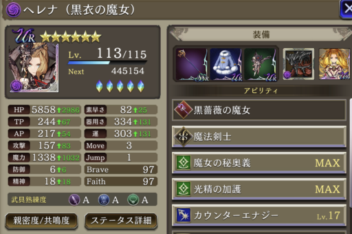 ![]() ![]() ▲サイプレスパイル+5装備 魔力166 魔法耐性貫通率+20 他の装備はページ上部のヘレナの画像参照 ▼更に仲間に魔力+50%追加 (魔力+153) |