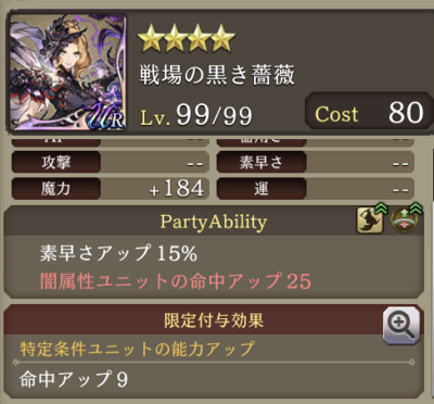 ![]() パーティアビ:火力なし 魔力は高いが付与効果で加算無し |