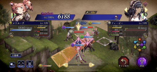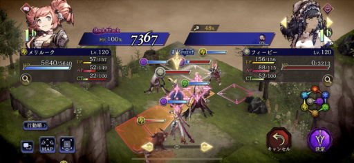 ![]() ▲相手のフルパワーを受けるためディフェンス0のフィービーです |