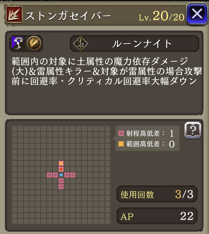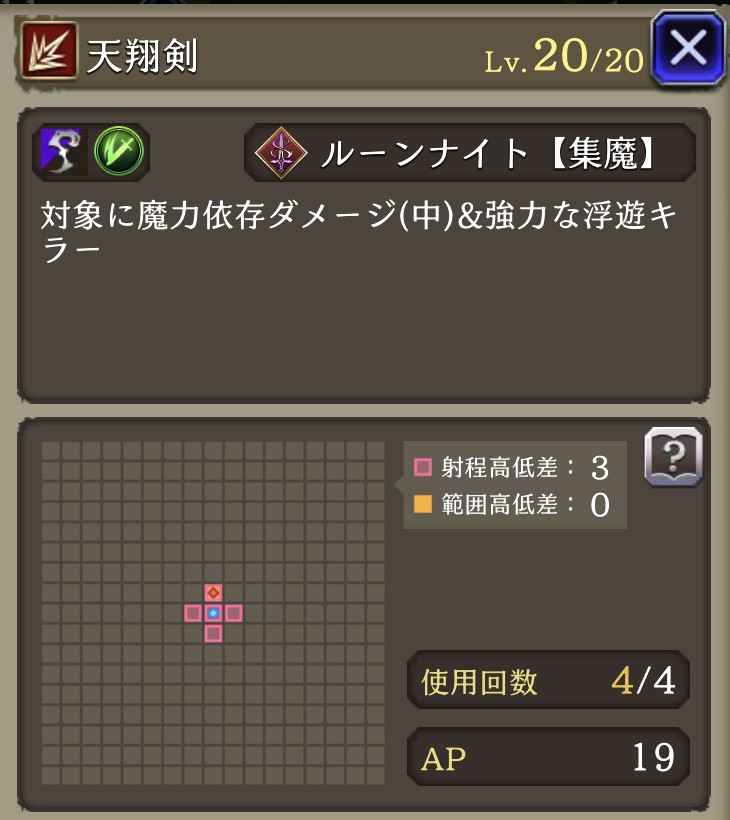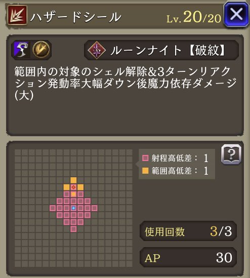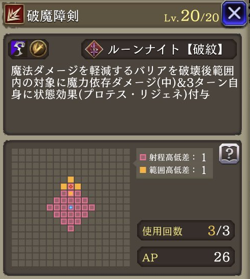 魔動転換 ![]() | ルーンナイト 魔法攻撃による被ダメージ時に30%の確率で自身のAP回復 |