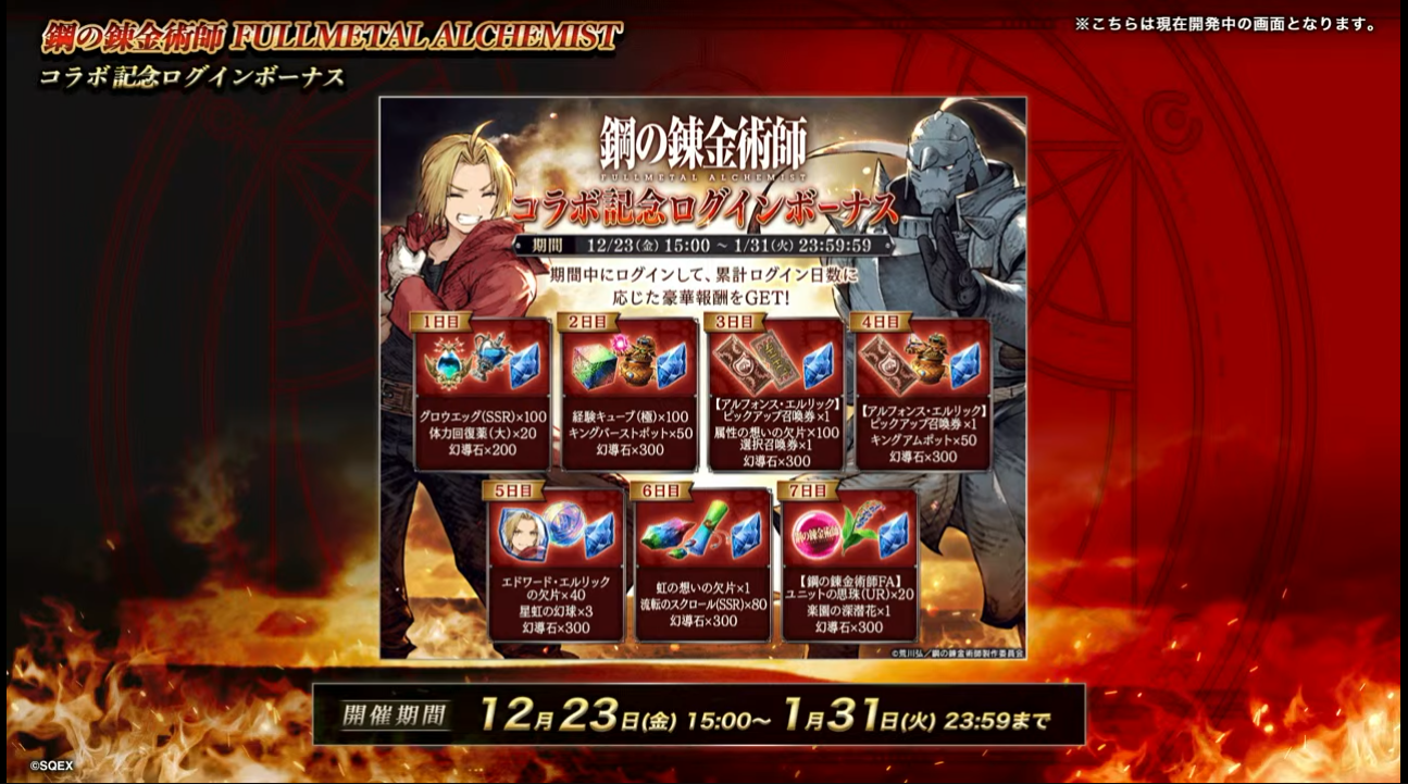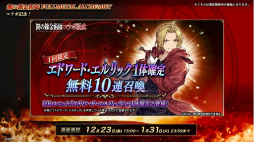 URユニット『エドワード・エルリック』が無料で1体獲得可能