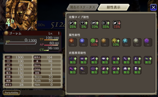 | 属性:土 弱点:魔法 | 属性:氷 弱点:打撃 |