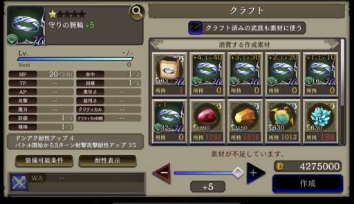 目玉:UR武具「守りの腕輪(装飾品)」のクラフト素材