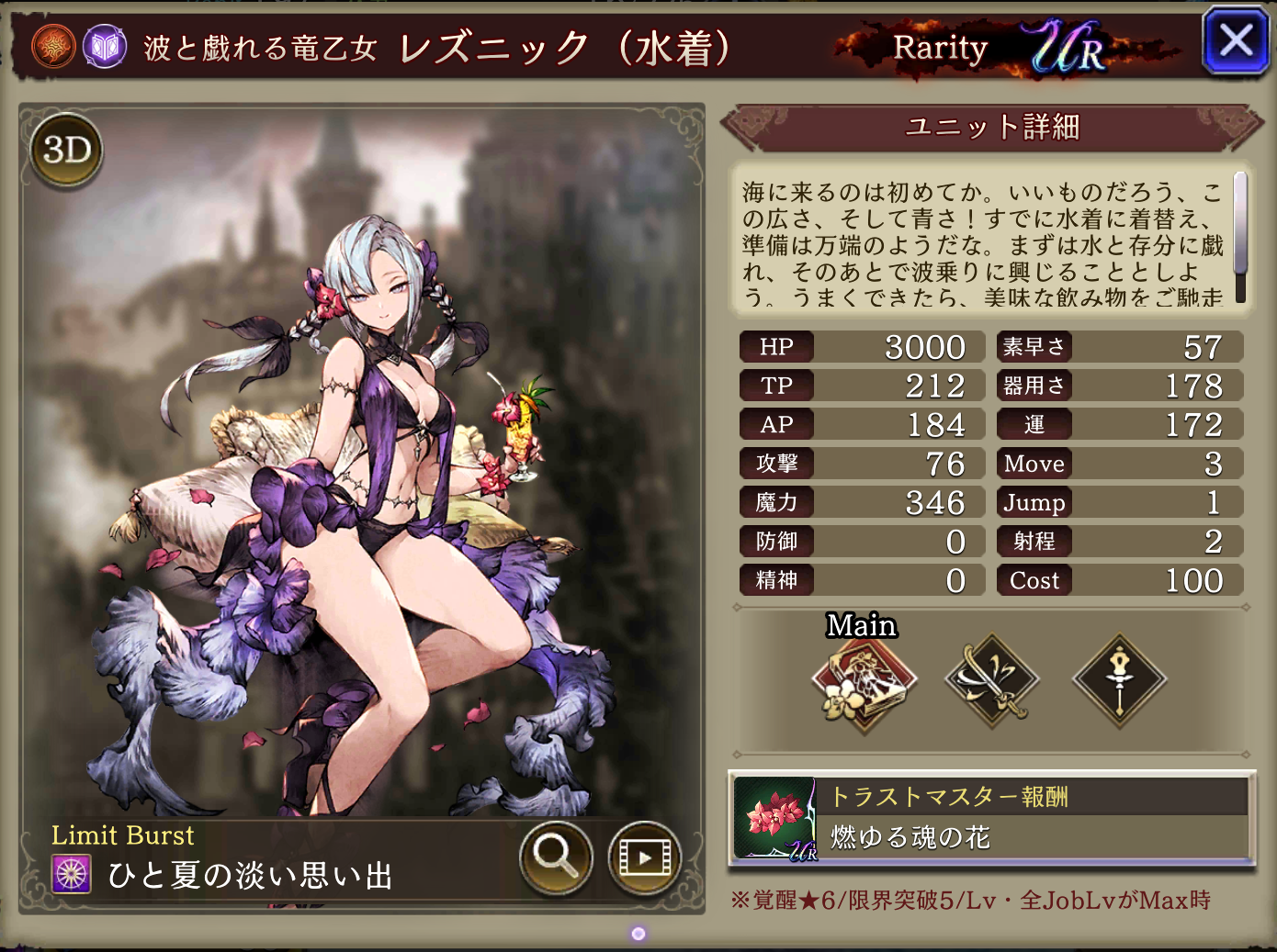 初期ヘイト-3、魔法被ダメ軽減10%、氷アビ耐性10 夏空の加護を強化 命中+30 | 回復・支援 |