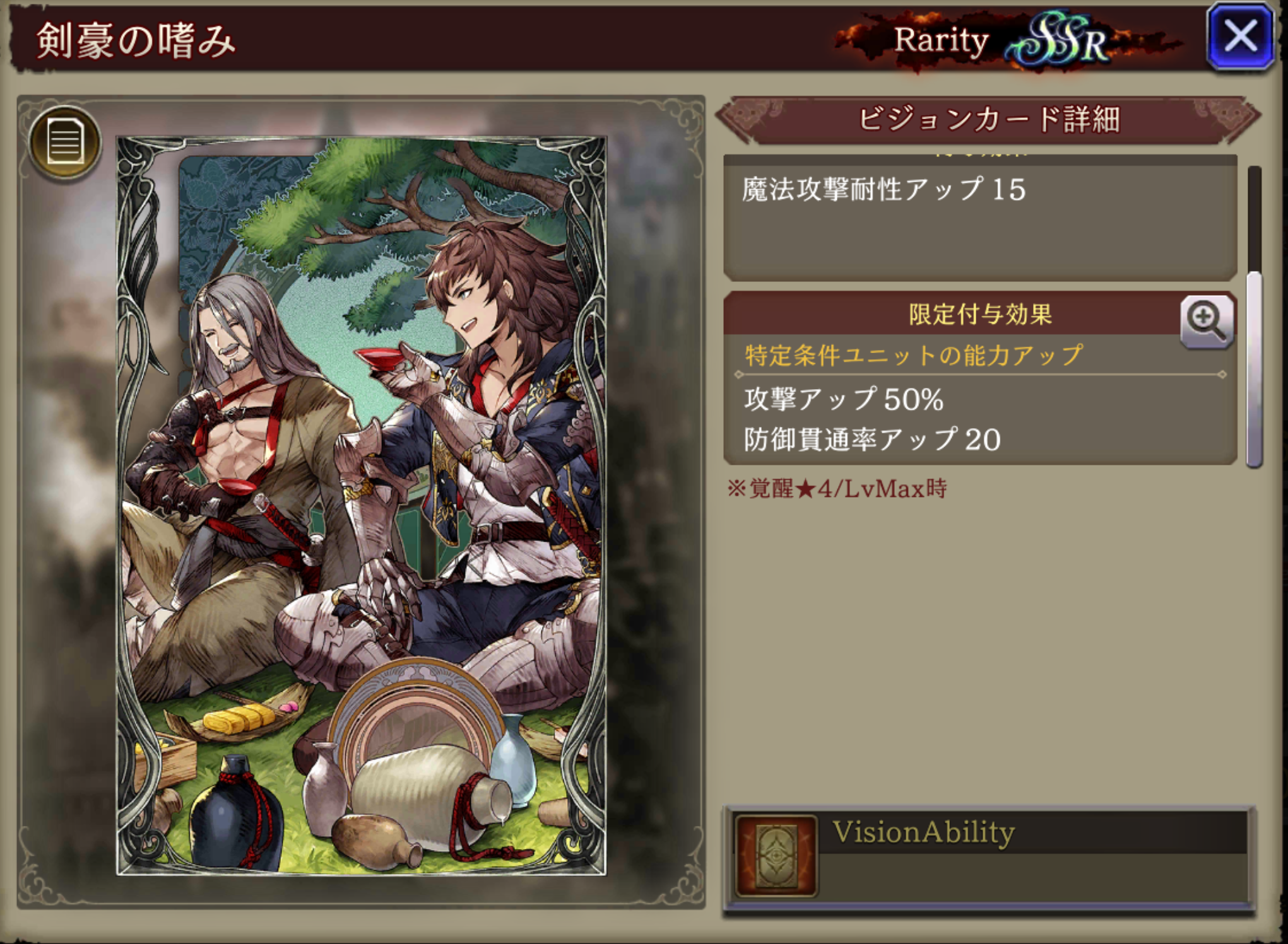 | 斬撃攻撃アップ | 12 | 13 | 15 | 17 | 20 |