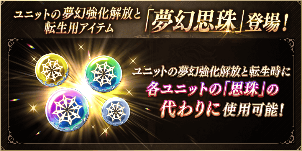 | 思珠 | スクロール | 覚醒魂 | 欠片 | 輝石像 | 経験極 | 経験大 | ||