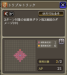 また、回避ダウン後に回避アップアビリティを使われても、回避ダウン効果は消えず、例:トリプルトリック-40%、煙幕+30%、差し引き-10%回避ダウン状態のようになります。