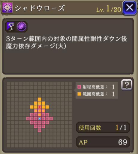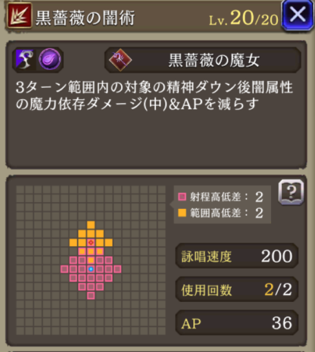 ![]() 黒薔薇の闇術のダメージ |