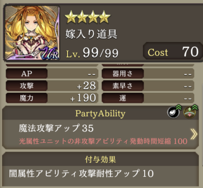 ![]() ▲全体的にディフェンス能力の高い囁きです 範囲耐性も+10盛っています |