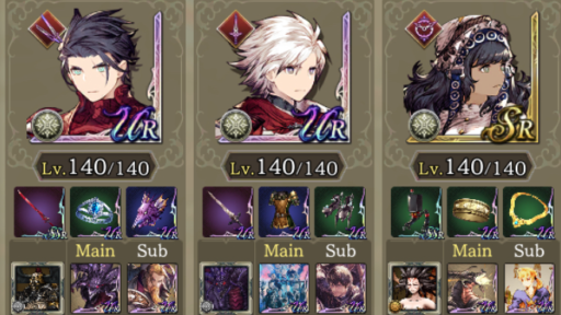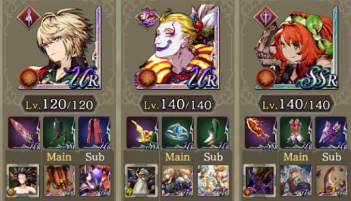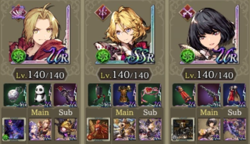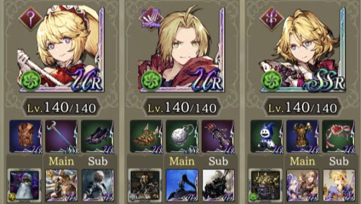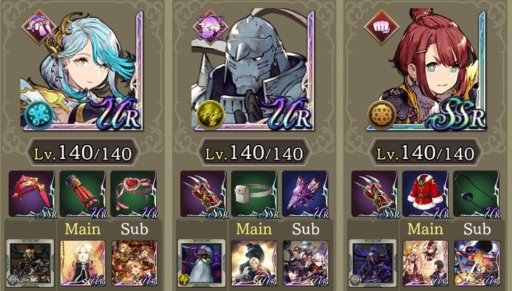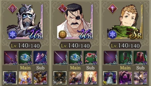 | 転生重ねて物理で殴れパ(240回) クラスマッチの時は環境に多い編成に一方的な不利にならないような編成を心がけてます。私はシュテルとフィービーは固定なので今回ルシオを選んだ理由としてはこんな感じです。 ・HPと範囲耐性でダブルクイック対策 ・開幕フィービーに秘孔撃ち込んでmove5にして射撃対策 ・ルシオ一人で完結してる闇対策 ・サブモンクの必中 ・exアビwithディアルドトラマスでbrave50ダウンしたかっただけ。(ほんとはサブ竜フィービーの咆哮で相手をチキンにしたかったけど発動確率低すぎて断念) ・転生から目を逸らすな |