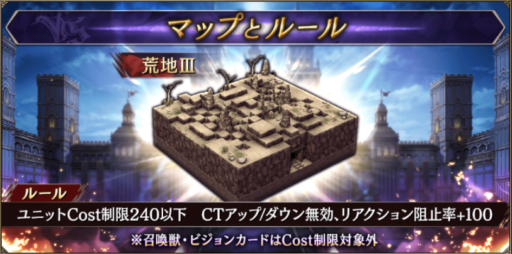 ![]() クラスマッチルールに準ずる (ユニットCost240以下・VC他は自由・初期位置変更可) ※推奨:クラスマッチで使用した編成そのまま |