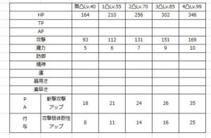 | 無凸LV.40 | 1凸LV.55 | 2凸LV.70 | 3凸LV.85 | 4凸LV.99 | |