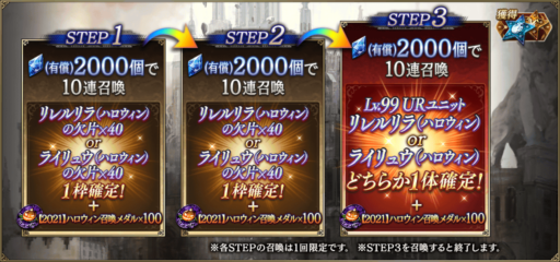 | ハロリラ&ライリュウ未所持なら熱すぎるガチャ! STEP3でLv99の状態で入手可能! (有償2000石×3STEP) |