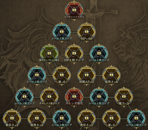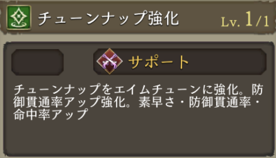 | Lv50 +5 | 斬撃攻撃+15 バトル開始から3ターンクリティカルダメ+20 |