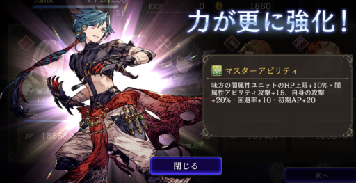 ![]() 味方の闇属性ユニットのHP上限+10%・闇属性アビリティ攻撃+15、自身の魔力+20% ⇩ ⇩ 味方の闇属性ユニットのHP上限+10%・闇属性アビリティ攻撃+15、自身の魔力+20%、HP上限+10%、範囲攻撃耐性+15 |