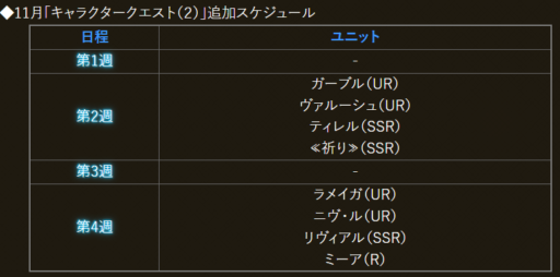 【キャラクエ2追加スケジュール】