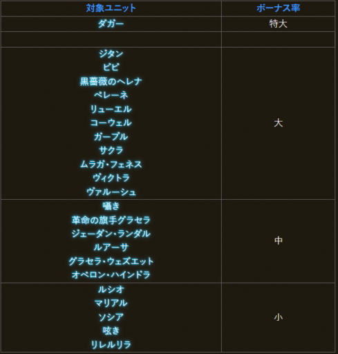 味方の風属性ユニットのHP上限+10%・風属性アビリティ攻撃+15、自身の防御貫通率+20、獲得AP+30%