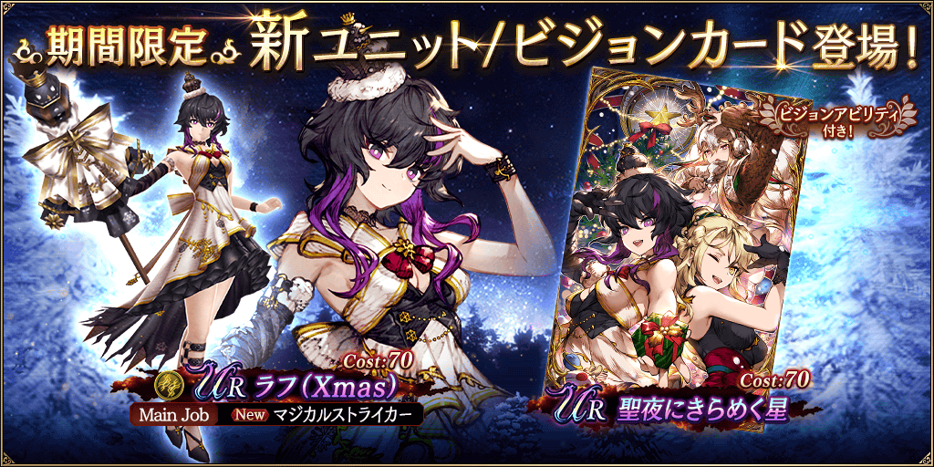 ![]() | ラヴィエス(Xmas) | 243 | UR | 70 | 氷 | 大剣 |