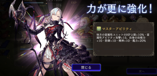 ![]() 味方の雷属性ユニットのHP上限+10%・雷属性アビリティ攻撃+15、自身の治癒力+10、魔力+10% ⇩ ⇩ 味方の雷属性ユニットのHP上限+10%・雷属性アビリティ攻撃+15、自身の治癒力+10、防御+10、精神+10、魔力+20% |