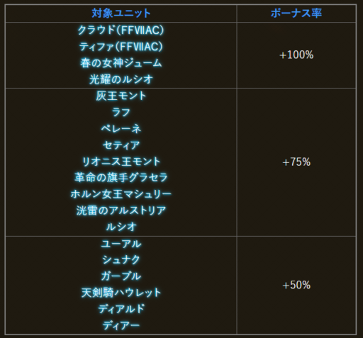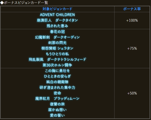 | ユニット・召喚獣・ビジョンカード比較 | ||