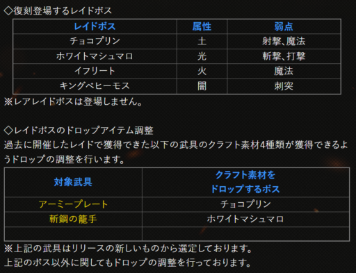 素材ドロップ一覧 |