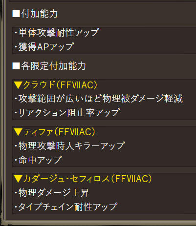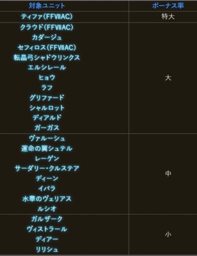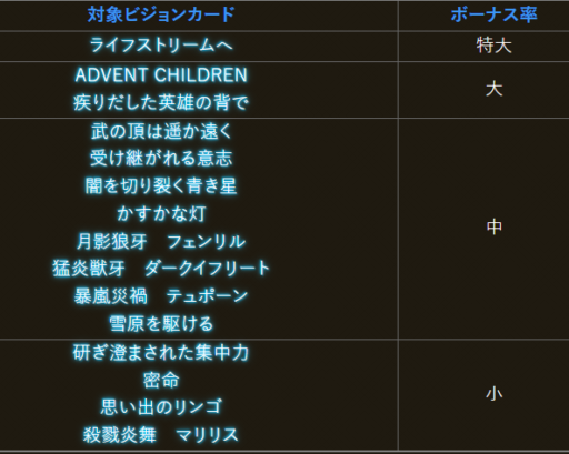 | ユニット・召喚獣・ビジョンカード比較 | ||