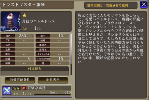 ![]() | 物理50%軽減バリア クリティカル回避+15 | 4 | |