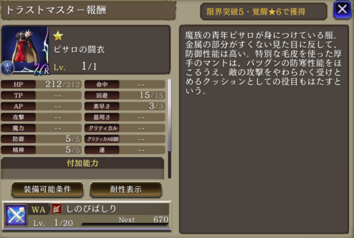 味方の火属性ユニットのHP上限+10%・火属性アビリティ攻撃+15、自身の斬撃貫通率+15、AP獲得量+30%