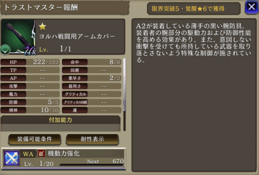 ![]() | 【連続使用1】 防御貫通率+40 ガッツ解除 | 503 | |
