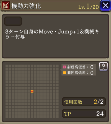 刺突・魔法・単体耐性+15 壊機旋撃を強化 3ターンの間対象のリアクション発動率-100 与ダメージの30%を吸収効果 | 物理系 アタッカー |