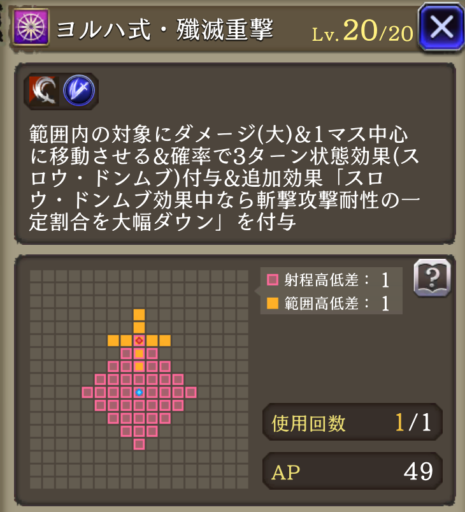 | 味方の氷属性ユニットのHP上限+10%・氷属性アビリティ攻撃+15、自身の斬撃攻撃耐性貫通率+20、獲得AP+30% |