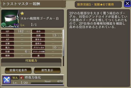 ![]() | 回避率+42 リアクション阻止率+50 | 1 | |
