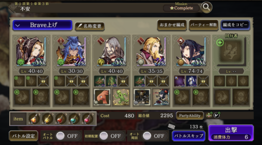 理由は初期位置が5人固まっていて、敵が弱く、クエストの場所を覚えやすいためです。(1章選んでそのまま節変えずBattle1)
