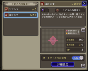 | フィーナのサブジョブをラピスの白魔道士にして、念のためはげます以外のアビリティをOFFにしておきます。 | ![]() |