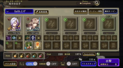 オススメクエストは1章1節Battle1「双子の王子」やBattle2など簡単で早いです。