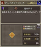 ![]() 装備者限定でFaith+6の効果 上げたいユニットに装備したら、他のTPアビリティをオフにすれば大丈夫 |